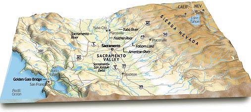 Part of A-1 centerpiece, this 3-d terrain map was customized from a flat topographic map.